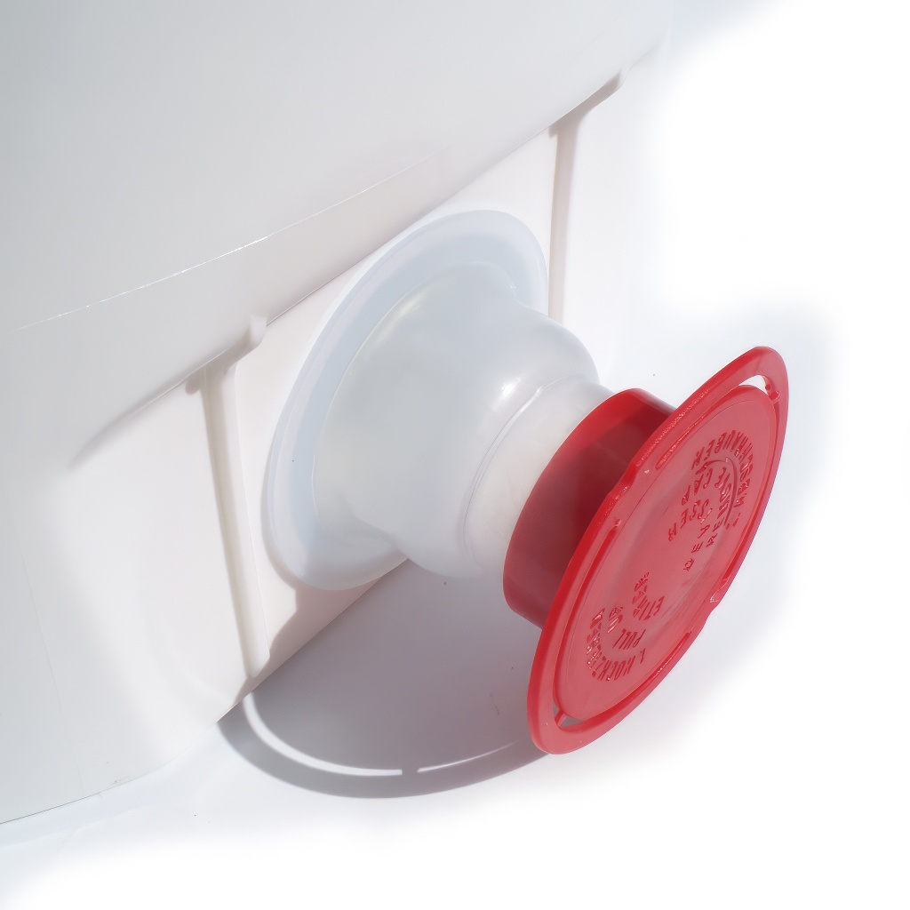 Günstiger Plastikbehälter für Honig mit einfachem Schraubablasshahn am Boden. Das Ablassventil am Boden des Behälters ist sehr einfach und ermöglicht eine leichte Reinigung. Alle Teile des Behälters, einschließlich des Gewindes sind aus Kunststoff, so dass der Honig nicht mit anderen Materialien in Berührung kommt.