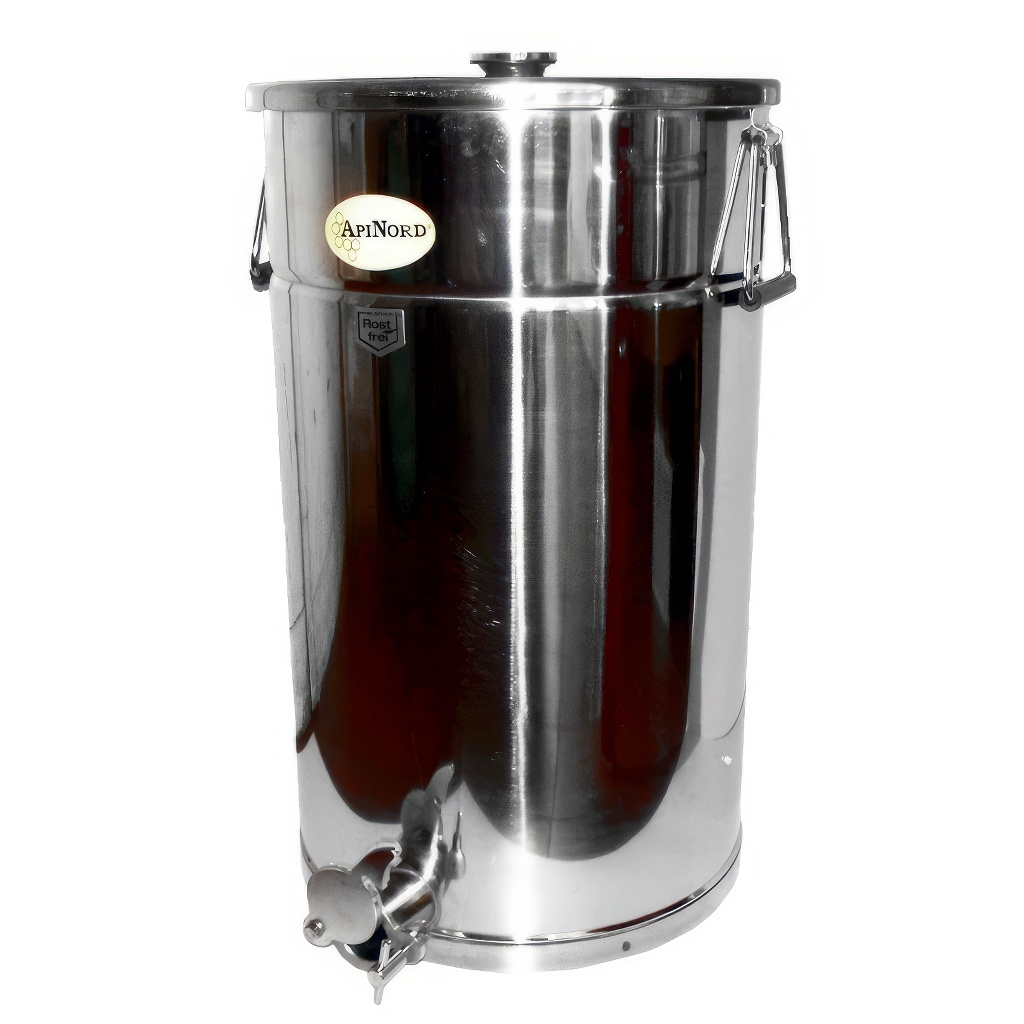 Hochwertiger Edelstahl-Abfülltank mit Metallauslauf von der deutschen Firma H. Holtermann. Einfache Konstruktion des Tanks aus lebensmittelechtem Edelstahl. Zum Tank gehört auch ein Edelstahldeckel. Der Tank ist mit praktischen Griffen zum Tragen ausgestattet. Der Edelstahlhahn ist dicht am Boden des Tanks angeschweißt, der Scherauslauf enthält auch eine Gummidichtung. Die physischen Abmessungen des Tanks sind: Höhe 52 cm, Durchmesser 30,5 cm. Hergestellt unter den eingetragenen Marken imgut und Rost frei.