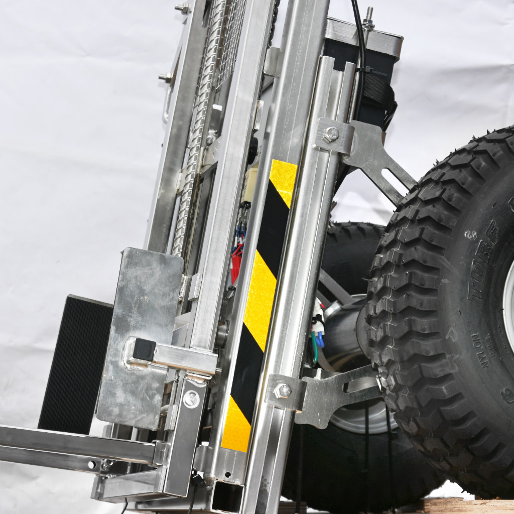 Neuer Imkerwagen für die Handhabung von Beuten, einzelnen Zargen oder Behältern mit Honig. Der Wagen hat einen eigenen leistungsstarken Antrieb mit Fahrwerk und Vorrichtung zum Heben und Senken von Lasten. Der Beutenwagen ist aus Edelstahl gefertigt, robuste und widerstandsfähige Konstruktion. Die Höchstgeschwindigkeit beträgt 6,5 km/h. Das Gerät hebt Lasten bis zu einer Höhe von 107 cm. Es ist auch mit der Möglichkeit des Selbstverladens ins Auto ausgestattet, wenn es an einen anderen Ort transportiert werden muss. Sein Gewicht beträgt 54 kg. Die Lithium-Ionen-Batterie ermöglicht 4 Stunden ununterbrochene Nutzung und die Ladezeit beträgt 6 Stunden.