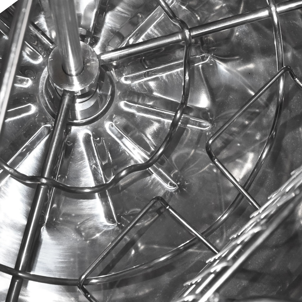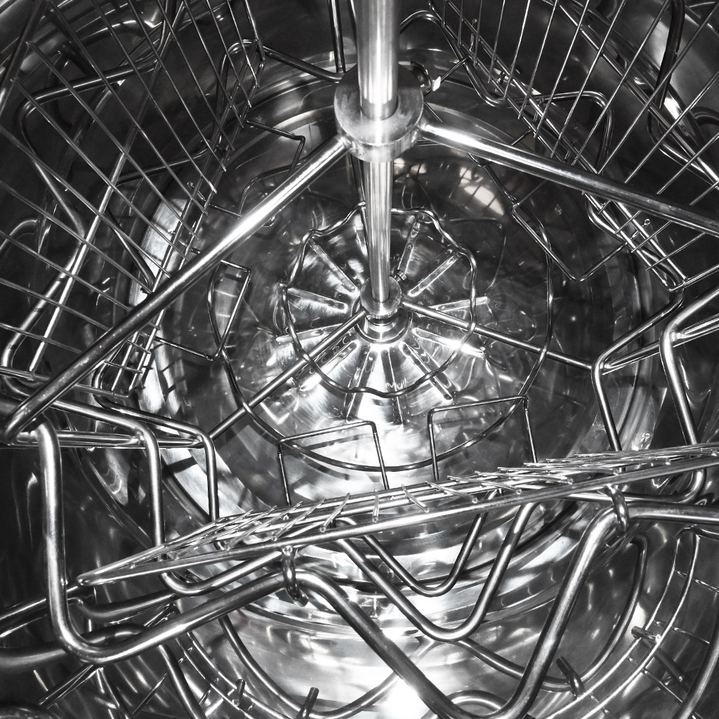 Die Körbe der Honigschleudern werden mit dichterem Netz aus Edelstahldrähten gefertigt, dadurch wird die Kraft der Wabe beim Schleudern auf eine größere Fläche verteilt und es kommt nicht zum Einschneiden der Drähte in das Bienenvolk. Zur Herstellung der Körbe werden runde Stäbe verwendet, die widerstandsfähig gegen Verdrehung sind. Runde Oberflächen ohne scharfe Kanten lassen sich auch leichter reinigen.