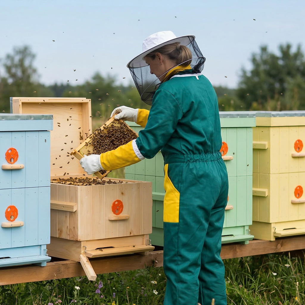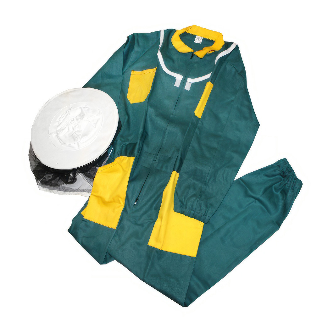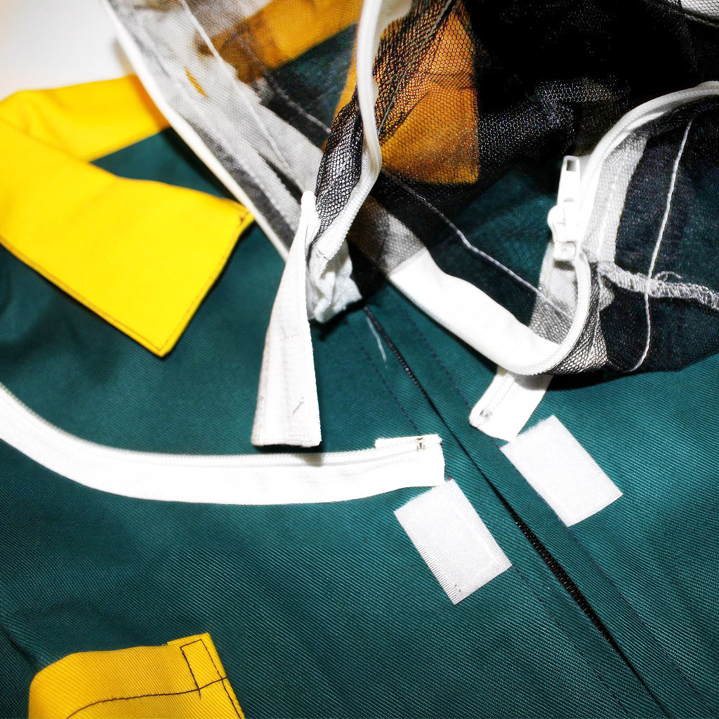 Der Imkeranzug ist aus festem Baumwollgewebe genäht, der untere Teil der Jacke