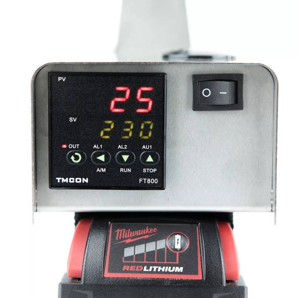 InstantVap 18V Original batteriebetriebener Oxalsäure-Verdampfer in der Version für 18V Batterie. Dynamische Temperaturregelung: Erreichen Sie eine schnellere Behandlung dank präziser Temperaturkontrolle. Einstellbare Temperaturregelung mit Display. Behandlungszeit: 25-30 Sekunden für eine 2-Gramm-Dosis Oxalsäure. Ergonomisches und robustes Design aus Edelstahl: Komfortable Handhabung, kein seitliches Neigen, Gewährleistung von Stabilität und Langlebigkeit. Schnelldosierer werkzeuglos einstellbar für die Dosierung von bis zu 1-4 Gramm Oxalsäure. Rahmen und Dosierer des InstantVap Verdampfers sind aus säurebeständigem Edelstahl gefertigt. Dosierer und Säurebehälter sind isoliert für perfekte Temperaturhaltung auch bei ungünstigen Witterungsbedingungen. Der Dosierer hat eine präzise Skala für die Dosierung von 1 - 4 Gramm Oxalsäure mit einem einzigen Knopfdruck. Starkes Messing-Ausflussrohr mit 6 mm Durchmesser, das nicht verstopfungsanfällig ist, da es keine Rohrbiegung hat. Einfacher Zugang und Reinigung bei Verstopfung, die gesamte Rohrlänge ist zugänglich. Die Ausgussdüse ist austauschbar.