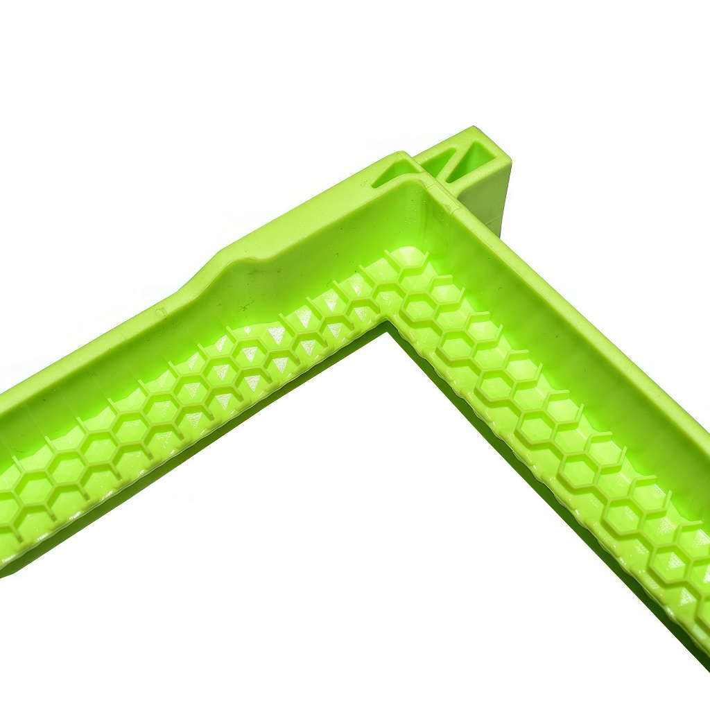 Das Material ist grünes Polypropylen mit Temperaturbeständigkeit bis 100°C mit Zertifizierung für Lebensmittelkontakt und gesundheitlicher UnbedenklichkeitKunststoffrähmchen für freien Wabenbau Langstroth 3/4 (185) ersetzen das Nageln, Drahten, Einlegen und Einschmelzen von Mittelwänden. Sie sind aus Material hergestellt, das für Lebensmittelkontakt zertifiziert ist. Kunststoffrähmchen werden nicht nur weltweit, sondern auch bei uns seit vielen Jahren verwendet. Das Rähmchen ist aus grünem Thermoplast. Der Kunststoff hält Temperaturen bis 100°C aus. Bei höheren Temperaturen wird er weich und verformt sich. Kann in Dampfwachsschmelzern verwendet werden, aber nicht in Schmelzgeräten. Ideal ist es, das Wachs mit einem Spachtel abzuschaben.