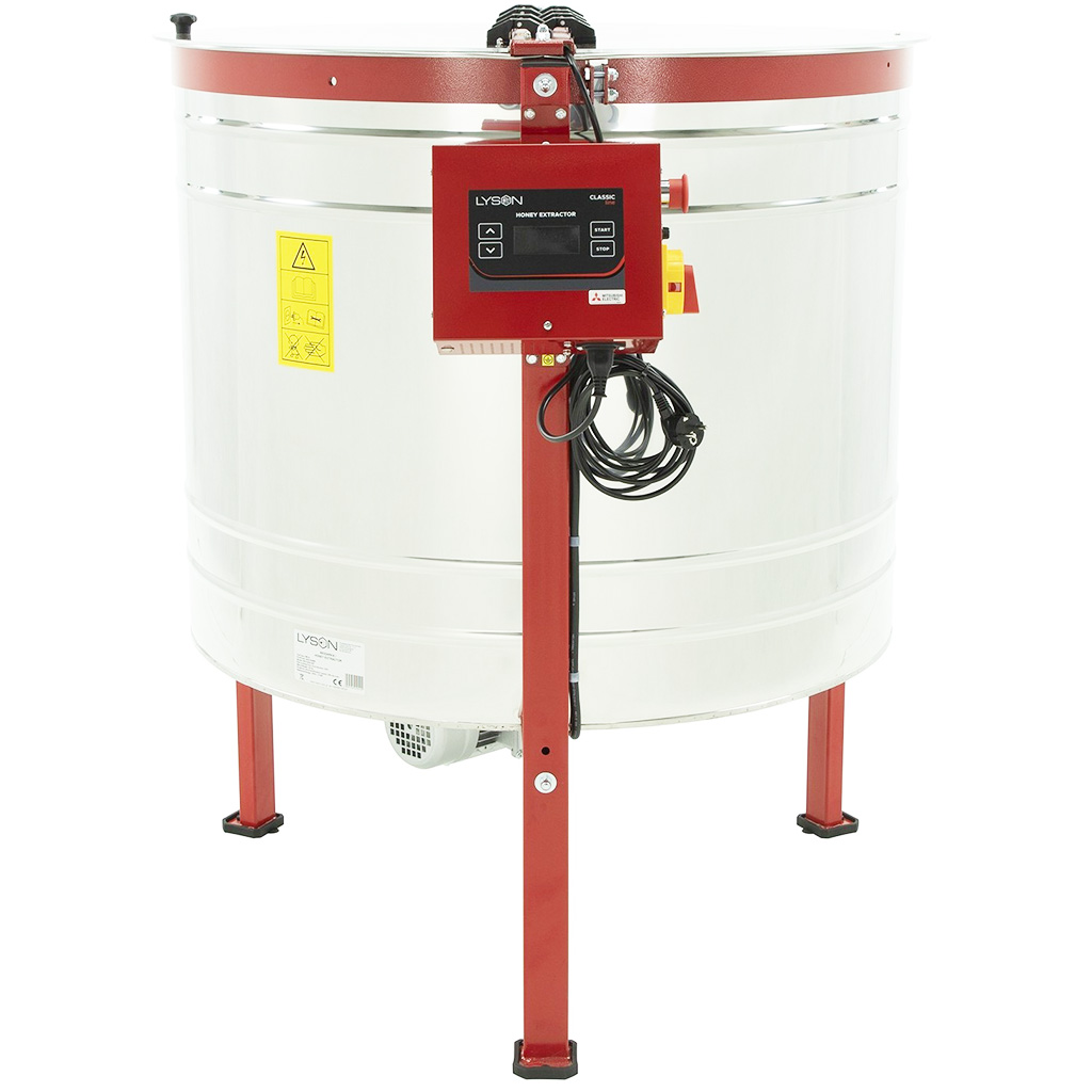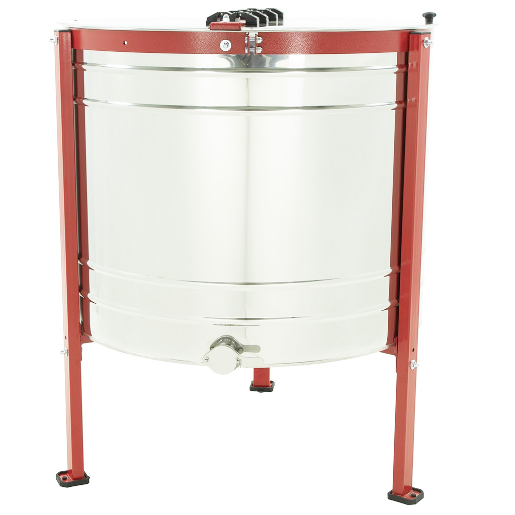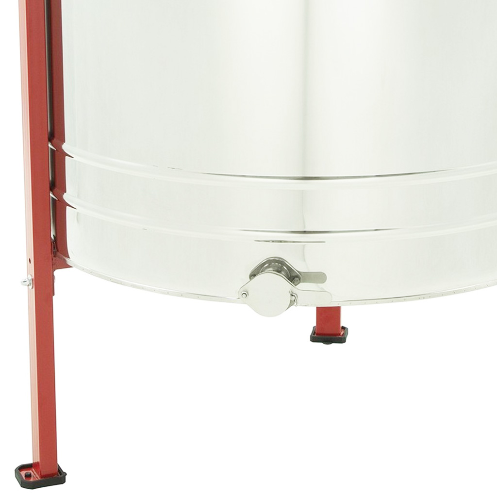 Honigschleuder - wendbar, elektrisch, aus Edelstahl, für vier Waben. Imkerei-Honigschleuder mit elektrischem Antrieb. Der Elektromotor ist im unteren Teil der Honigschleuder angebracht. Abmessungen des Korbes Tiefe 42,5 cm x Breite 34 cm. Trotz der Korbabmessungen ist diese Honigschleuder geeignet zum Schleudern von Rähmchen 39x24. Die Korbabmessungen geben nämlich nicht die tatsächliche Größe des Platzes an, der größer ist als die eigentlichen Korbabmessungen. Vier-Waben-Honigschleuder mit Kesseldurchmesser ca. 90 cm. Höhe der Honigschleuder mit Metallgestell ca. 112 cm. Höhe vom Auslaufhahn zum Boden ca. 40 cm. Alle Teile der Honigschleuder, die mit Honig in Berührung kommen, sind komplett aus Edelstahl gefertigt. Die Übertragung der Drehkraft vom Motor erfolgt problemlos dank hochwertiger Lager. Die neue Honigschleuder ist sicherlich eine großartige Hilfe für jeden Imker. Stufenlose Drehzahlregelung. Die Honigschleuder hat 8 voreingestellte Programme. Die Honigschleudern werden in der EU hergestellt.Die Honigschleudern haben volle 2 Jahre Garantie. Wir bieten unseren Kunden kompletten Garantie- und Nachgarantieservice. Wir vermitteln die Möglichkeit des Umtausches und der Lieferung von Ersatzteilen. Die Honigschleudern haben europäisches Qualitäts- und Sicherheitszertifikat CE. Garantie 24 Monate. Die Honigschleuder hat eine Steuereinheit HE-02N mit 8 Programmen, die ersten 2 Programme für die Arbeit im manuellen Modus, das dritte automatische hat Werkseinstellung. Programme 4 bis 8 – ermöglichen eigene Einstellungen. In alle Honigschleudern aus unserem Angebot passt ein Langstroth-Rähmchen hochkant, also Rähmchen mit Oberträger-Länge in Langstroth-Größe. In der Beschreibung ist meist die Korb- oder Kasettengröße angegeben. Um den Korb oder die Kassette herum ist jedoch oben und unten noch Platz. Die Korbbreite gibt Ihnen umgekehrt an, wie hoch ein Rähmchen sein kann, das in die Honigschleuder passt.Diese Honigschleuder ist geeignet zum Schleudern der meisten verwendeten Rähmchen. Problemlos schleudern Sie darin Rähmchen 39x17, 39x24, 39x27,5, 39x30, alle Langstroth-Größen von 137 bis 285, Optimal 42x17 und 42x27,5, Dadant, Tschechoslowak 37x30, und weitere. Rähmchen- und Kassettenabmessungen