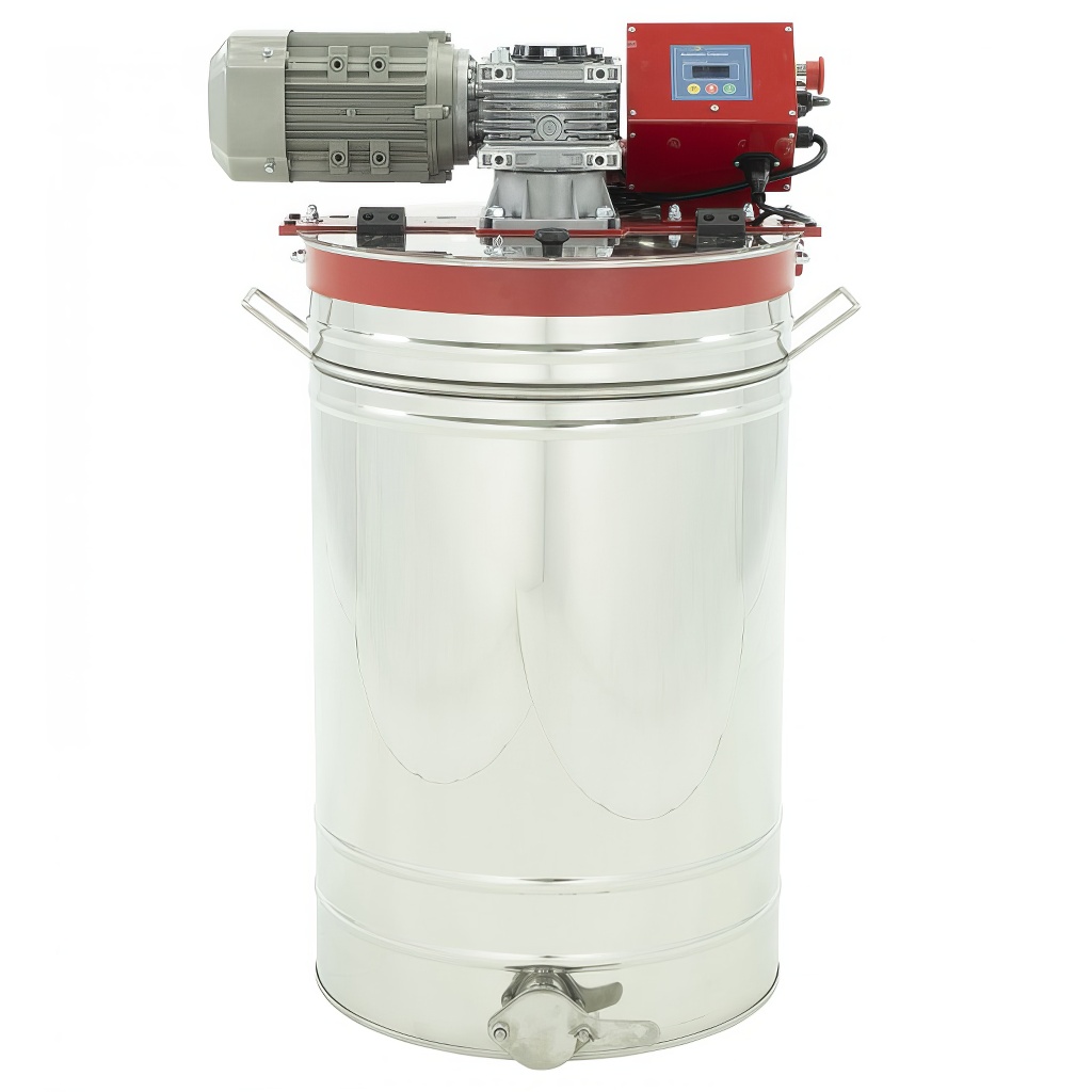 Gerät zum Cremigmachen von Honig mit einem Volumen von 200 l. Das Cremigmachgerät hat ein Rührwerk mit Zeitschalter, sodass es automatisch nach eingestellten Intervallen selbstständig cremig macht.Leistung des Rührwerks 1100 W, 380V.