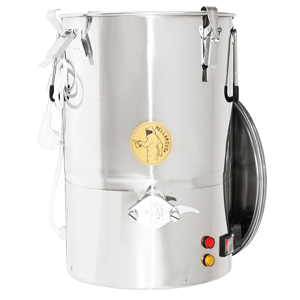 Abfüllbehälter für Honig Mellarius der ProLine-Serie sind mit angeschweißtem Edelstahlhahn für maximale Festigkeit ausgestattet. Der Deckel ist mit Hilfe von Haken gesichert, damit er bei der Handhabung des Behälters nicht herunterfällt. Der Deckel ist als dichter Deckel konzipiert, Bestandteil des Deckels ist eine Silikondichtung. Diese Behälter sind zusätzlich auch mit geneigtem Boden ausgestattet, damit der gesamte Honig immer perfekt abfließt und Sie die einfachste Arbeit haben. Für ein perfektes Ergebnis ist der Behälter mit einer Heizspirale ausgestattet, dank der Sie den Honig immer in perfekter Konsistenz haben können.