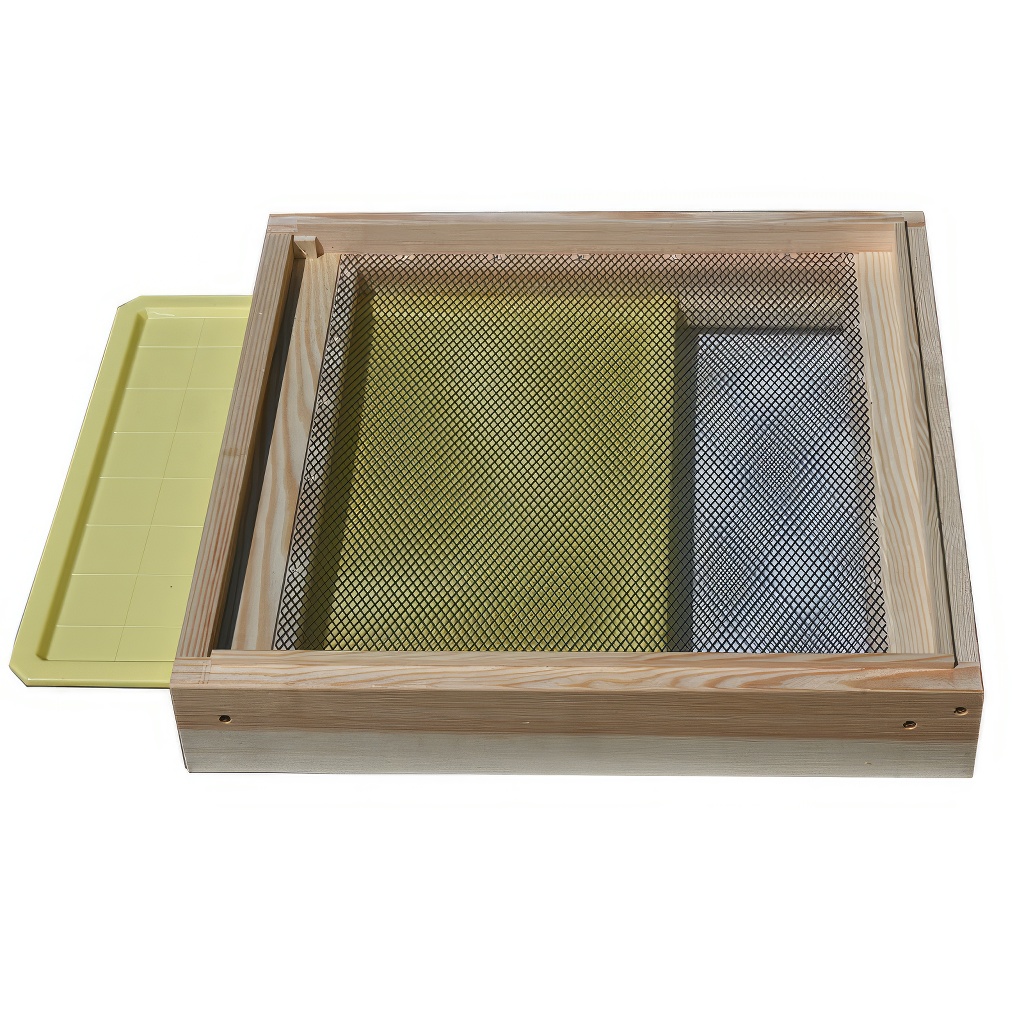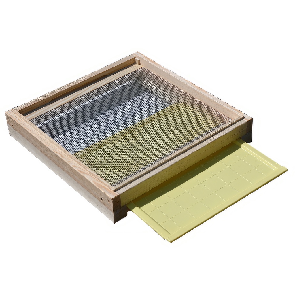 Niedriger vollvergitterter Varroaboden mit Lüftungsgitter aus rostfreiem Stahl.