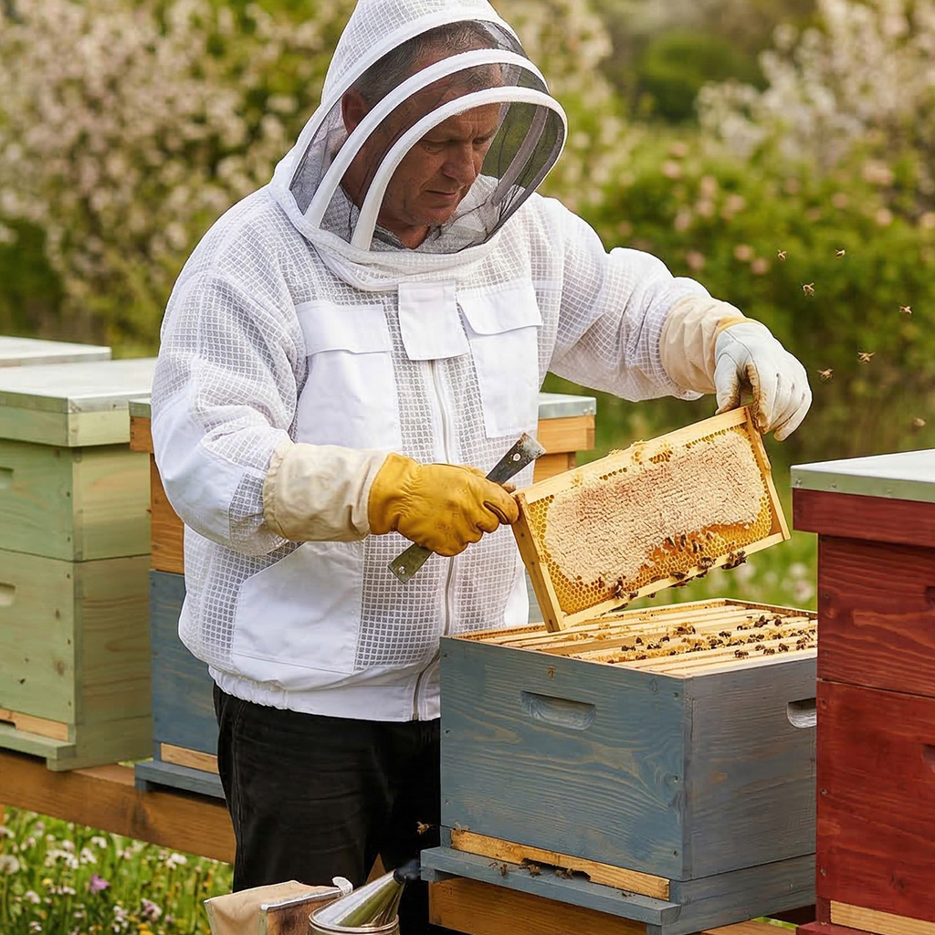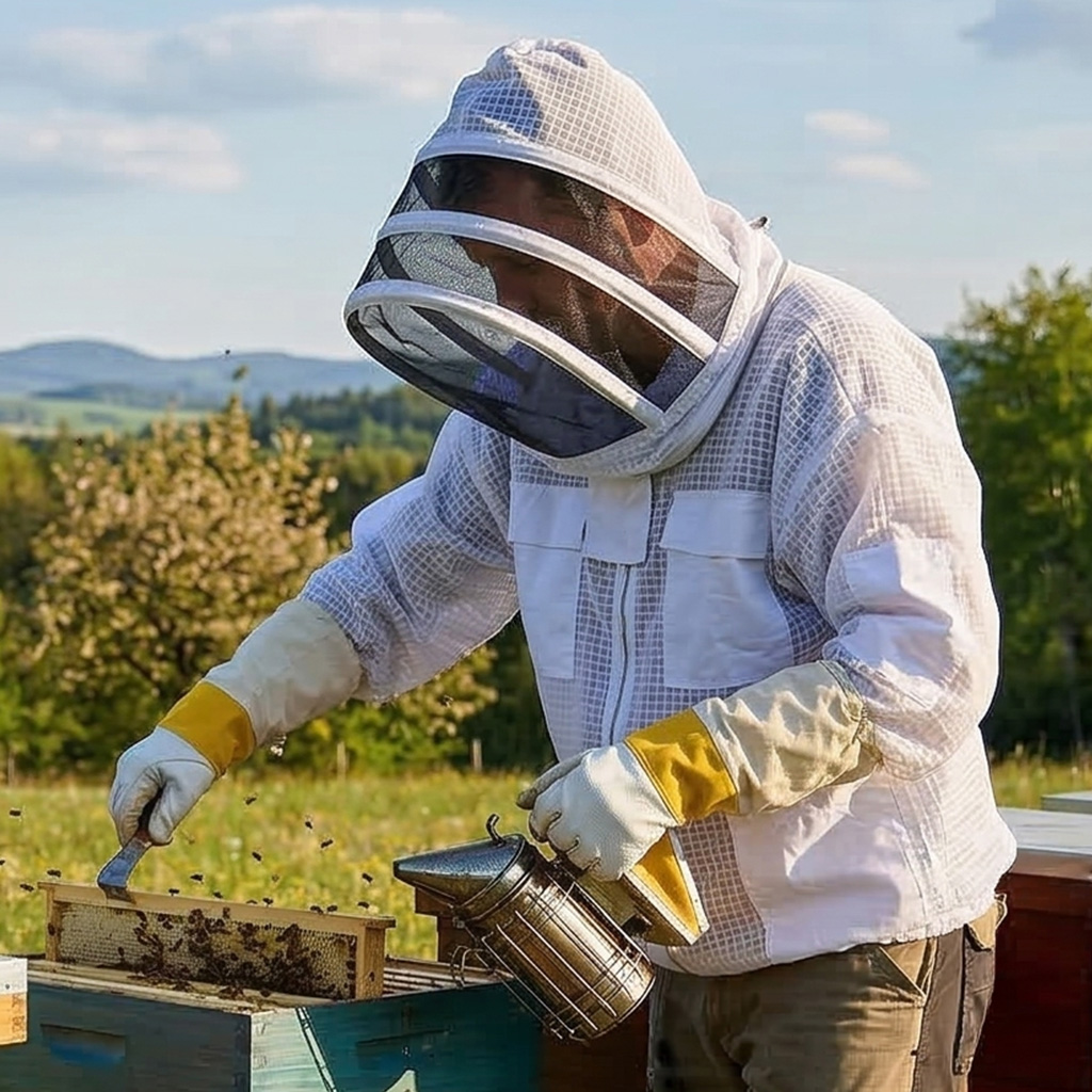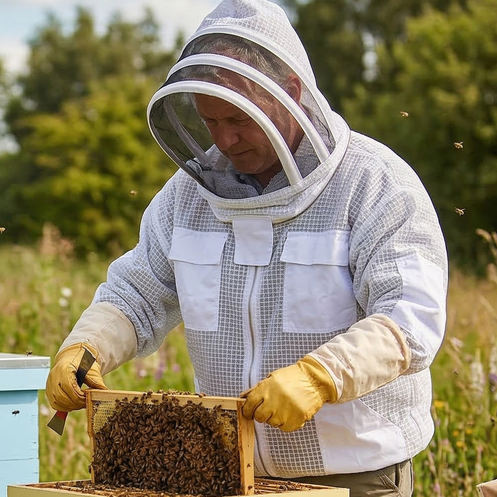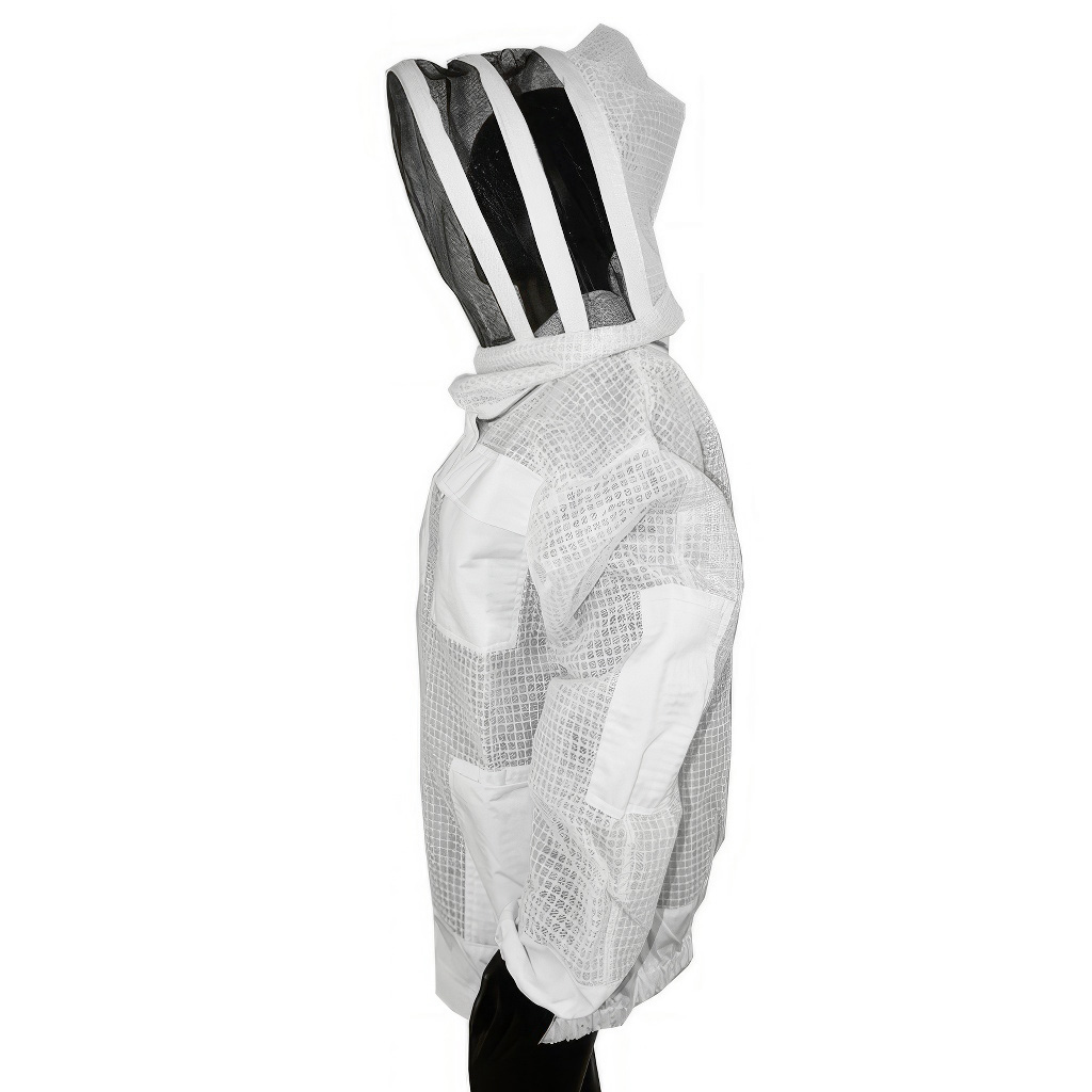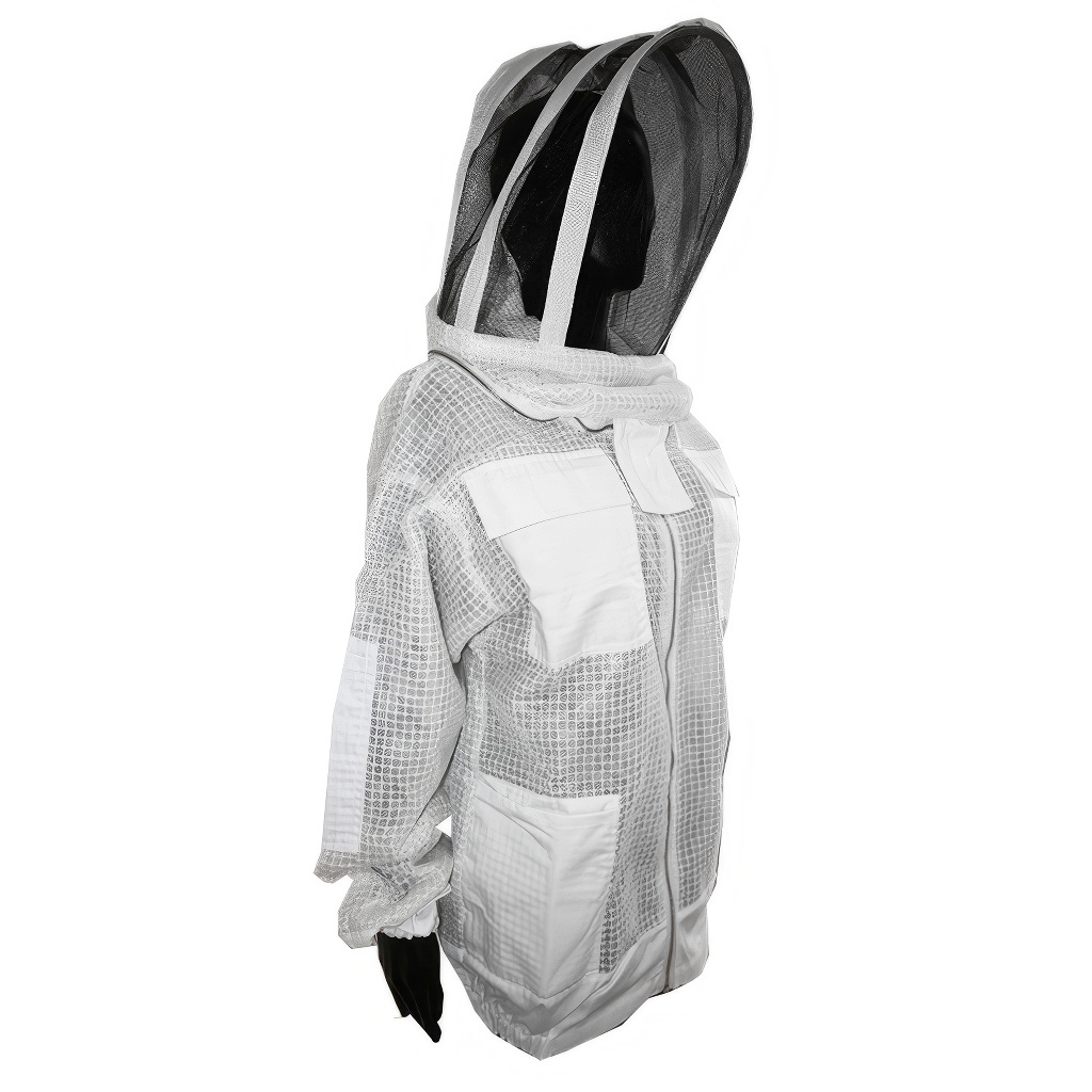 . Imkerbluse zum Schutz Ihres Körpers vor Stichen. Sie ist aus hochwertigen Materialien gefertigt, die Bienenstiche verhindern. Die Imkerbluse hat praktische Ärmel, die sich geeignet in Imkerhandschuhe einschlagen lassen, damit Sie die Bienen nicht in den Ärmeln bedrohen. Weitere Schutzelemente befinden sich um den Hals für maximale Sicherheit.Die Imkerbluse Astronaut mit Schleier hat eine praktische helle Färbung. Mit unserer Imkerbluse müssen Sie sich nicht mehr vor den stechfreudigsten Bienen fürchten.