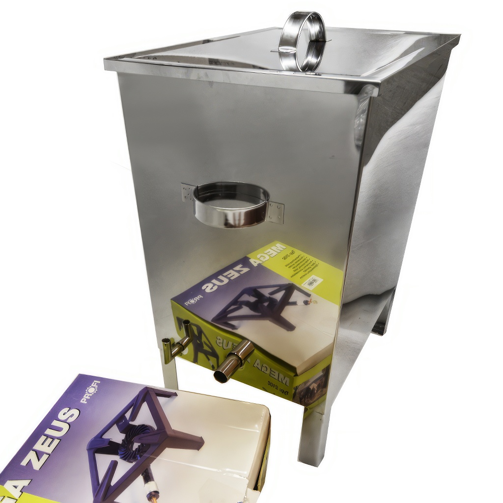 Größerer Wachsschmelzer - Wachskocher aus Edelstahl + Gasbrenner. Der Wachskocher ist für das einfache und schnelle Ausschmelzen von Wachs aus Rähmchen oder aus Waben mittels Wasserdampf bestimmt, der durch einen Gasbrenner erhitzt wird. Der Dampf-Edelstahl-Wachsschmelzer besteht aus einem Wassertank und einem Korb für Rähmchen oder Waben. Der Gasbrenner ist nicht im Lieferumfang enthalten, kann aber nachbestellt werden. Die Auswahl, ob Gasbrenner ja oder nein, finden Sie über dem Warenkorb-Button. Zum Wachskocher liefern wir einen hochwertigen tschechischen Gas-Industriebrenner Mega Zeus.