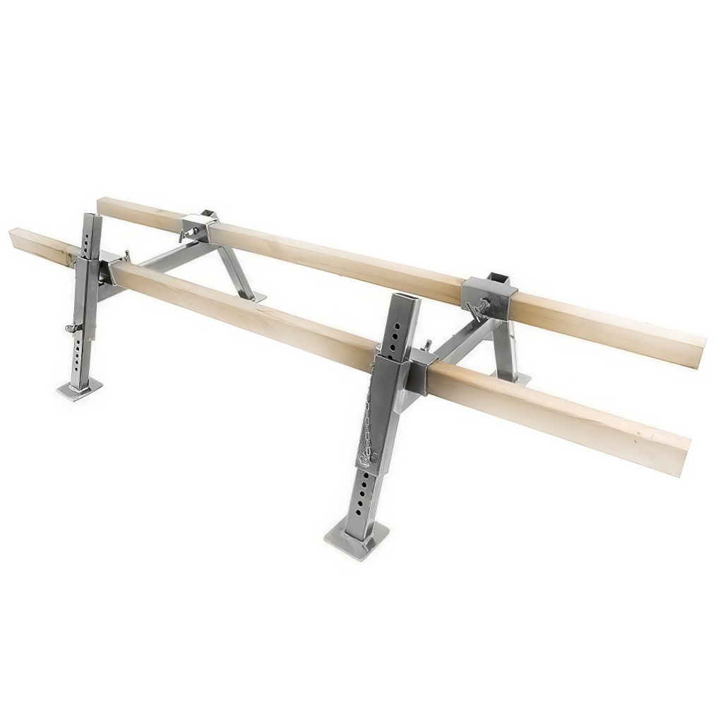 der Montage bildet er eine stabile universelle Bank. Der Ständer hat höhenverstellbare Beine,