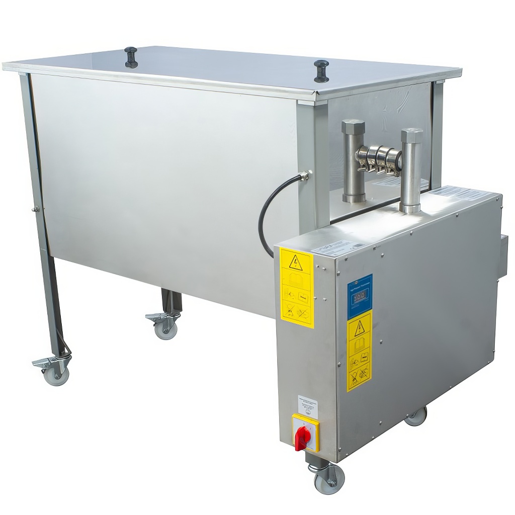 Das Wachsschmelzgerät und Entdeckelungstisch in einem, mit einer Länge von 1500 mm ist aus säurebeständigem Edelstahl 0H18N9 in einer Stärke von 0,8 mm gefertigt. Es dient zur Gewinnung von Wachs aus Bienenwaben mittels Dampfmethode. Es kann auch als Entdeckelungstisch bei der Honigernte verwendet werden. Das Gerät verwendet zur Wassererwärmung einen Heizer mit einer Gesamtleistung von 6 kW. Das Gerät enthält einen Wassertank, der mit dem Gerät verbunden ist. Es ist auch mit einem Wasserstandssensor ausgestattet, der automatisch den Wasserstand auf das erforderliche Niveau nachfüllt.Technische Parameter: