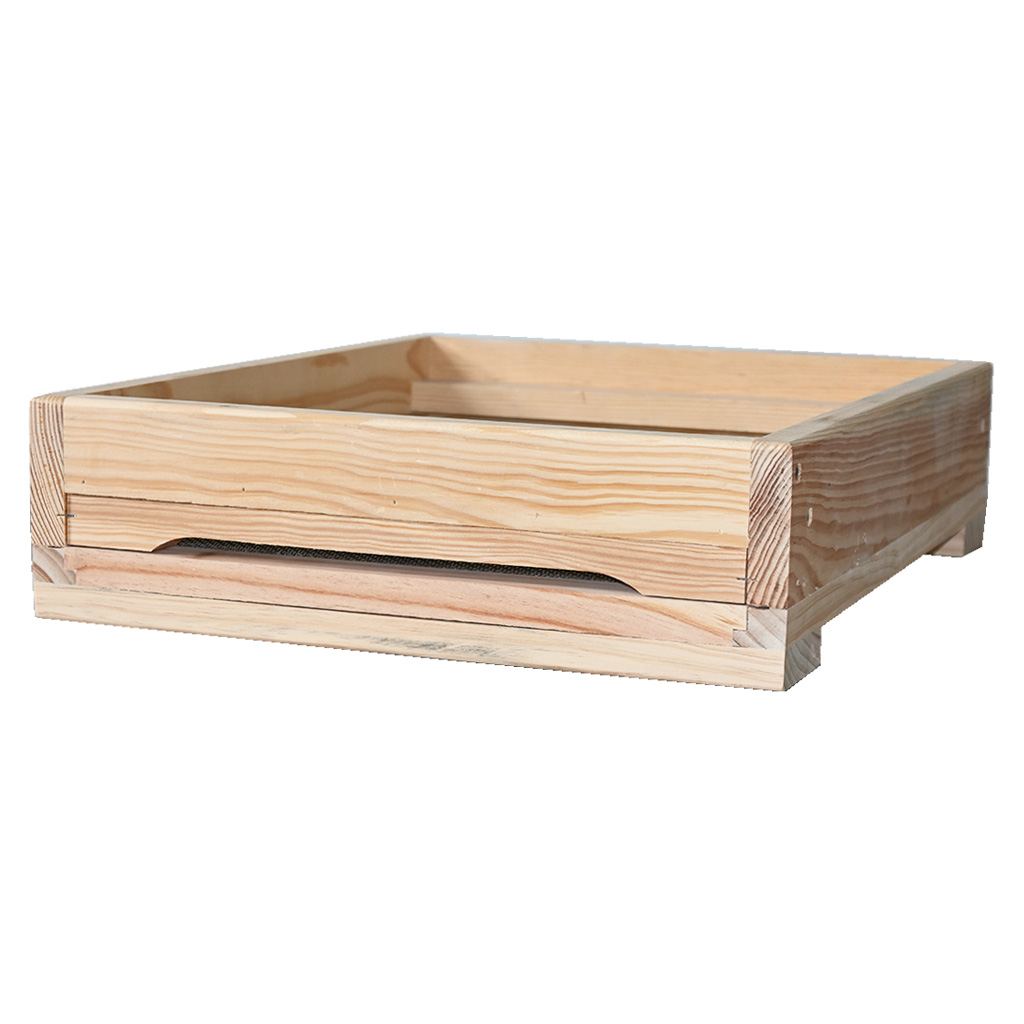 Im Preis des Bodens ist die Kunststoff-Schublade nicht enthalten, die für die ordnungsgemäße Funktion des Bodens nicht notwendig ist. Sie sollten eine Schublade zur Überwachung des Totenfalls kaufen. Oder für eine bessere Abdichtung des Bodens, wenn Sie Ameisensäure verwenden. Sie können sie gegen Aufpreis vor dem Hinzufügen zum Warenkorb auswählen.